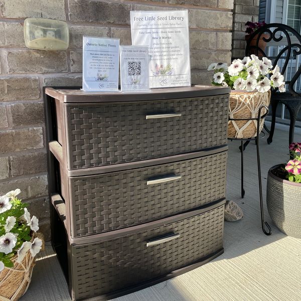 The Free Little Seed Library at Sage's Cove in Keswick (Georgina) Ontario offers free herb, vegetable, fruit, and Ontario Native plant seeds.